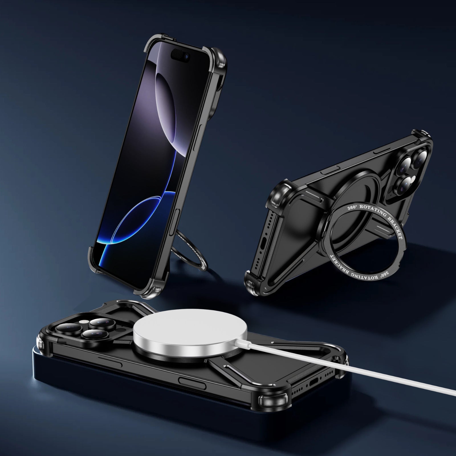 Compatible with Apple Series iPhone 16 Case 15 Metal Frameless Magnetic Stand Four-Corner Shockproof Phone Case